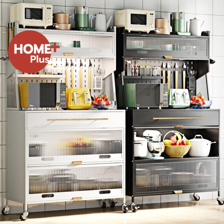 - Hangroo ชั้นวางของในห้องครัว พร้อมที่วางไมโครเวฟ แบบมีล้อมีตะกร้ารุ่น W56