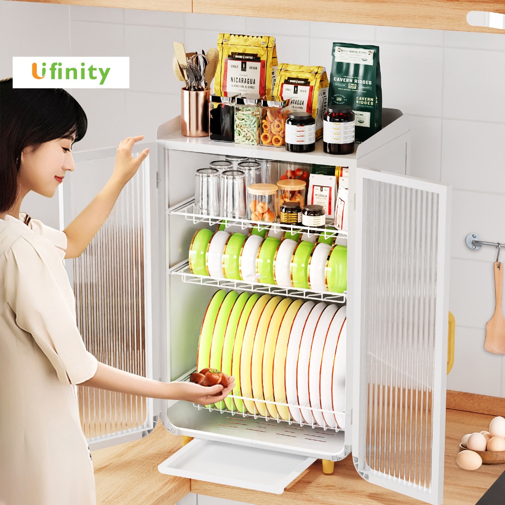 5. GSlife ชั้นวางของในครัว ตู้วางของในครัว แบบลิ้นชัก ที่วางจาน พร้อมถาดรองน้ำ