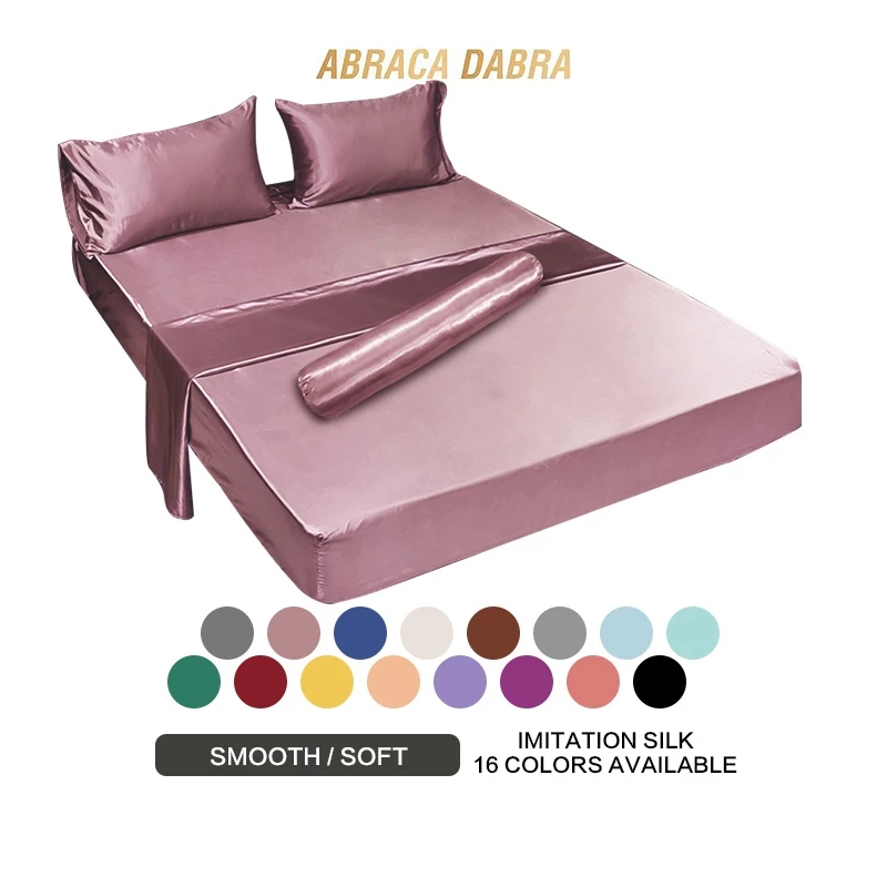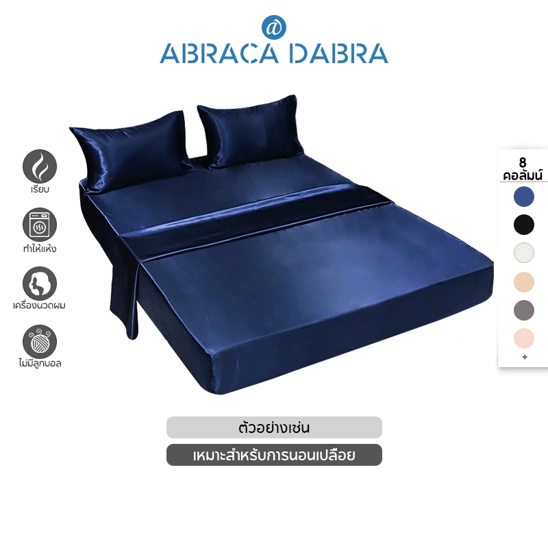 Abraca Dabra ชุดเครื่องนอน (ผ้าปูที่นอน+ปลอกหมอน) ที่ทำจากผ้าซาตินเทียม ให้ความรู้สึกเย็นสบายและเรียบเนียน เปรียบเสมือนสวรรค์สำหรับผิวของคุณ มีทั้งความนุ่มและมีความทนทานสูง ช่วยกล่อมให้นอนหลับสบายตลอดคืน มีให้เลือกหลายสีตามความชื่นชอบและสไตล์ที่คุณต้องการ