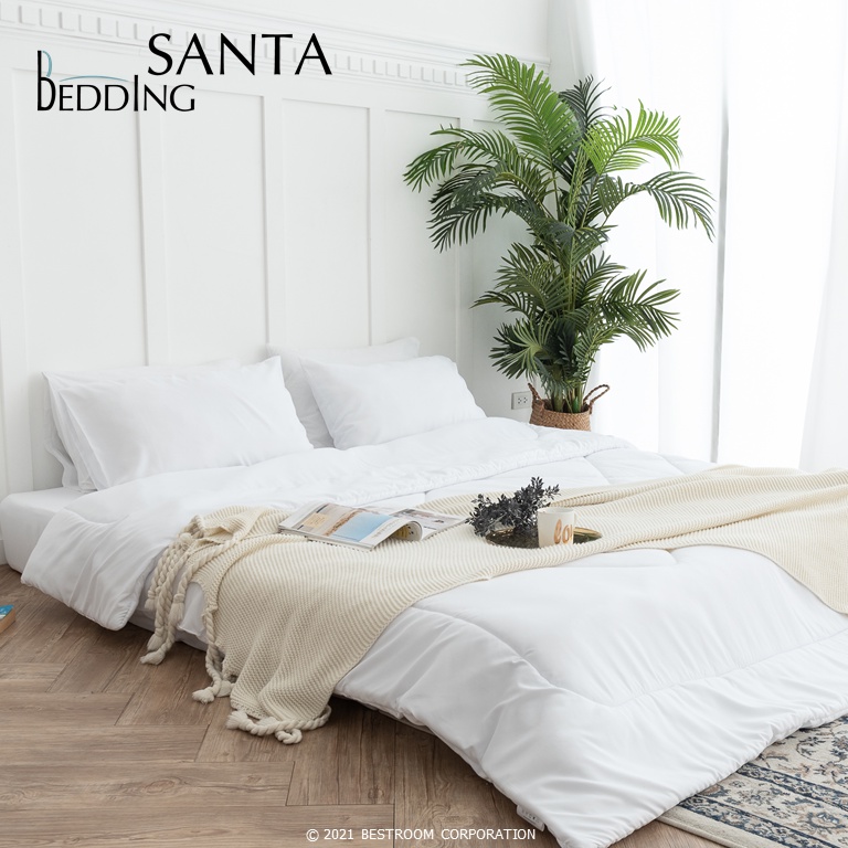ชุดผ้าปูที่นอน Santa ผลิตจากผ้า Supersoft ทอด้วยเทคนิคพิเศษ 340 เส้นด้าย ให้ความนุ่ม สบาย ระบายอากาศได้ดี และการันตีสีสดใสคงทน ไม่ซีดจาง มาพร้อมผ้าห่มนวมเส้นใยไมโครไฟเบอร์ขนาดเล็กพิเศษ 200 กรัม และเดินลายควิลท์ด้วยนวัตกรรมที่ทันสมัย ทำให้เกิดลวดลายที่คม ทนทาน และมีความสวยงาม