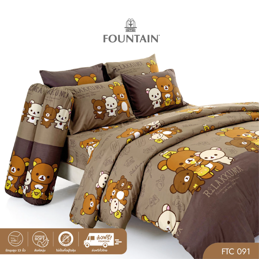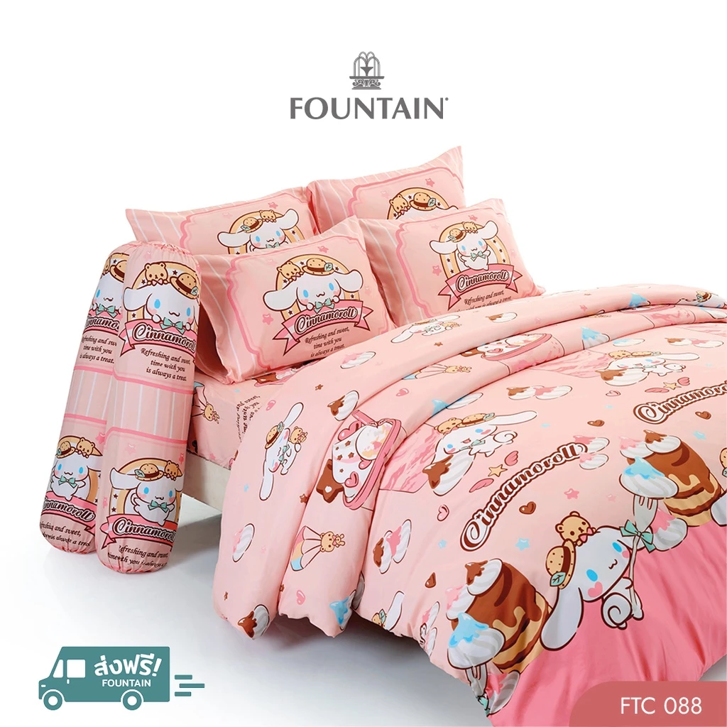 - ชุดผ้าปู 6 ฟุต และ 5 ฟุต ประกอบด้วย: ปลอกหมอน 2 ชิ้น + ปลอกหมอนข้าง 2 ชิ้น + ผ้าปูที่นอน 1 ชิ้น + ผ้านวม