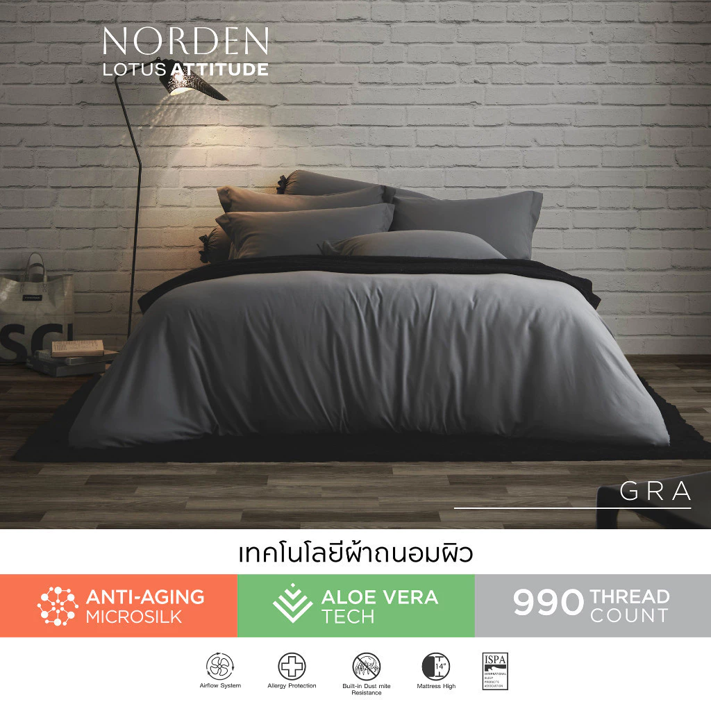 ผ้าปูที่นอน Lotus Attitude Norden Collection ที่มาพร้อมเทคโนโลยีของผ้าถนอมผิว Anti-aging MicroSilk ทอด้วยความละเอียด 990 เส้น/10 ตร.ซม. สร้างความแน่นละเอียดของเส้นใยให้เนื้อผ้านุ่มดุจเส้นไหม ไร้ริ้วรอยกดทับบนใบหน้าเมื่อได้สัมผัส ช่วยถนอมผิวพรรณ เสริมประสิทธิภาพอีกขั้นด้วยเทคโนโลยี Aloe-Vera Tech ที่สร้างพื้นผิวสัมผัสของผ้าให้มีความนุ่มลื่น เย็นสบายอ่อนละมุน เพิ่มความอบอุ่นให้กับเตียงของคุณอีกขั้นด้วยโทนสีธรรมชาติ แต่งแต้มสีสันที่ให้ความรู้สึกสงบและผ่อนคลายให้กับห้องนอนของคุณ