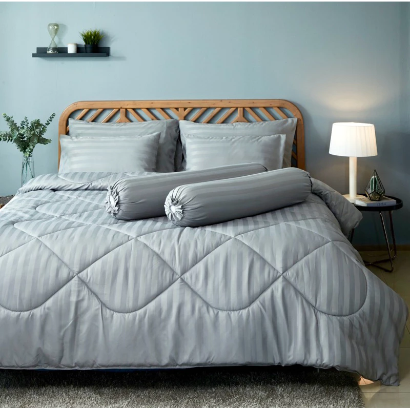 - ชุดผ้าปูที่นอนขนาด 5 ฟุต และ 6 ฟุต ประกอบด้วย ปลอกหมอน 2 ใบ ปลอกหมอนข้าง 2 ใบ และผ้าปู 1 ชิ้น