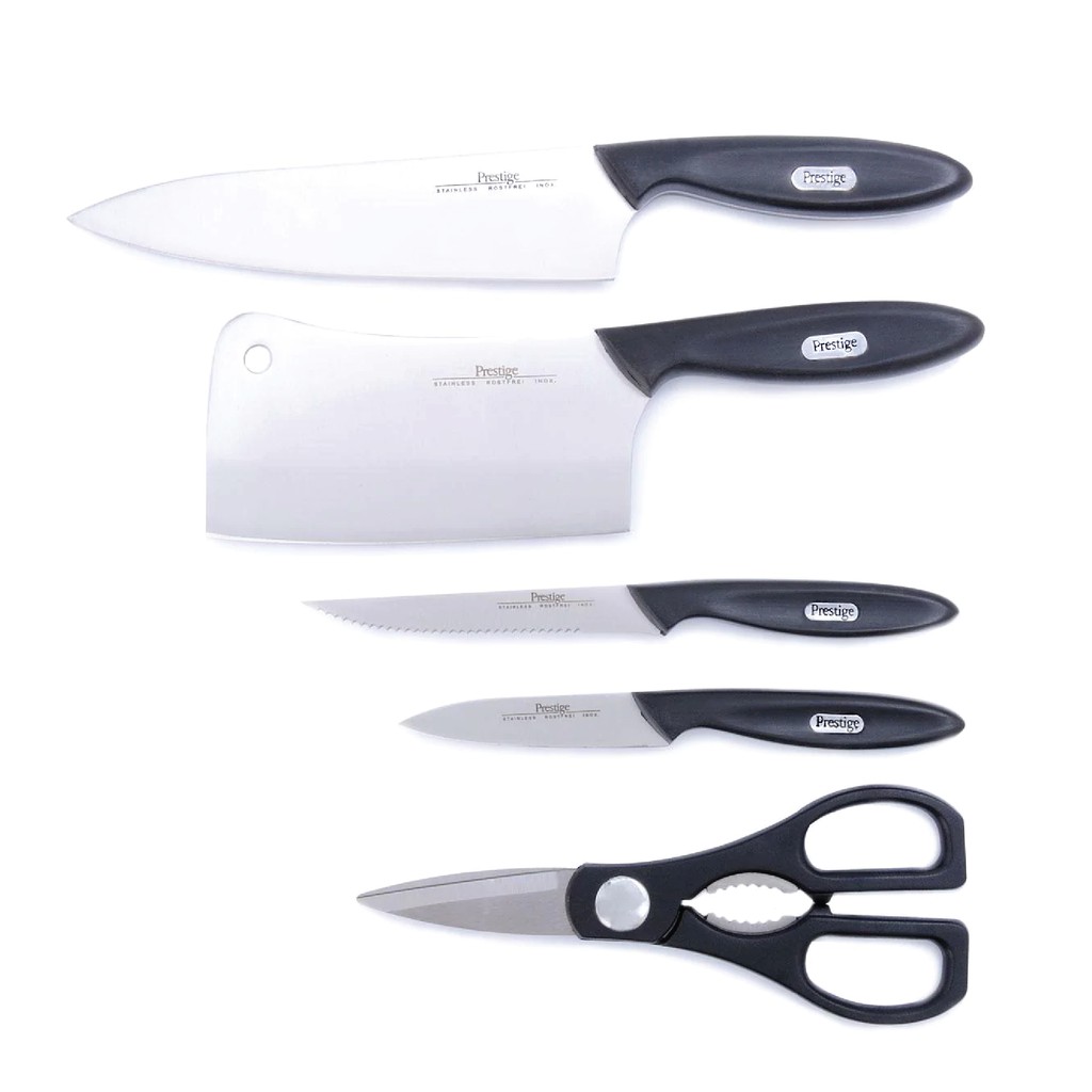 Prestige Cook’s Knives ชุดมีดทำครัว 5 ชิ้น ใบมีดผลิตจาก Stainless Steel คุณภาพดี ออกแบบให้ดูมีสไตล์ มีความหรูหรา เหมาะสำหรับคนรักการทำอาหารทุกชนิด ด้ามจับทำจากสแตนเลสที่ทนความร้อนได้สูง น้ำหนักเหมาะกับการ หั่น สับ ซอย สำหรับการประกอบอาหาร โดยด้ามจับออกแบบให้มีความกระชับ เเละใบมีดมีความคมสูง เพื่อให้คุณใช้งานได้อย่างสะดวกมากขึ้นกว่าเดิม