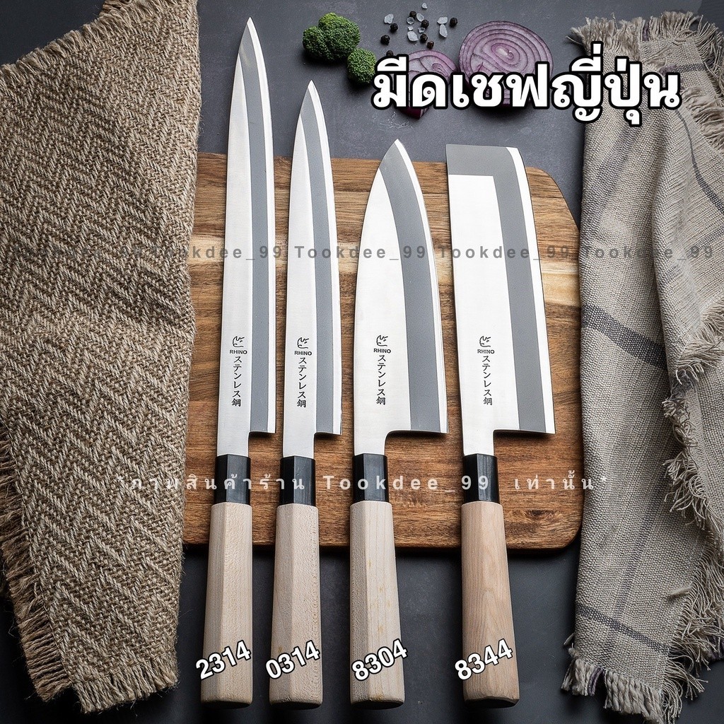 - Rhino มีดเชฟญี่ปุ่น มีดทำครัว ทำจากสแตนเลส ด้ามไม้ เกรดพรีเมี่ยม
