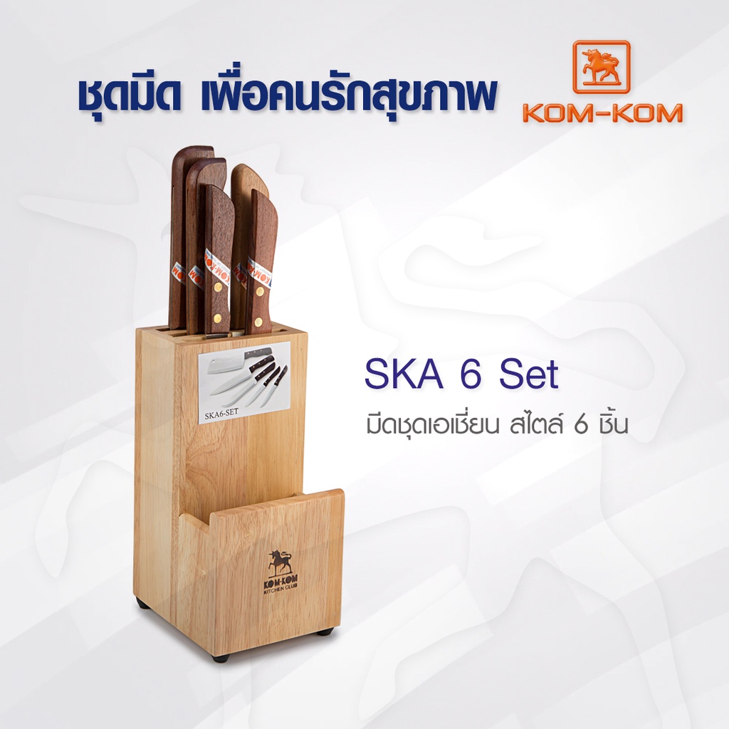 - Kom Kom มีดทำครัว มี 6 ชิ้น ชุดเอเชี่ยน SKA 6 SET พร้อมบล็อกเก็บมีด