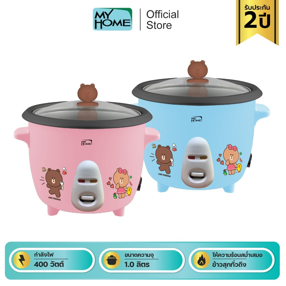 MYHOME หม้อหุงข้าว พร้อมการเคลือบสีและพิมพ์ลายสวยงาม ขนาด 1 ลิตร รุ่น CR-1501 MH หม้อด้านในเคลือบเทปล่อน ทำให้อาหารไม่ติดภาชนะ สามารถถอดล้างทำความสะอาดได้ ส่วนของฝาเป็นกระจกมีที่จับกันร้อนเป็นรูปน้องหมีน่ารักๆ ตัวหม้อสามารถทำความร้อนได้เร็ว และกระจายความร้อนได้ดี จึงทำให้ข้าวสุกได้อย่างทั่วถึง ให้คุณได้ข้างที่อร่อยและมีกลิ่นหอม หม้อรุ่นนี้เหมาะสำหรับครอบครัวขนาด 2 – 3 คน