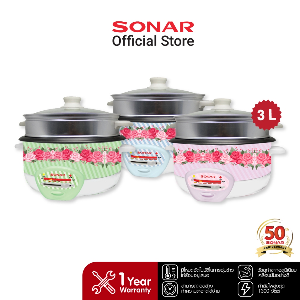 - อุปกรณ์เสริม: ถาดนึ่ง / ทัพพี / ช้อนซุป / ถ้วยตวง