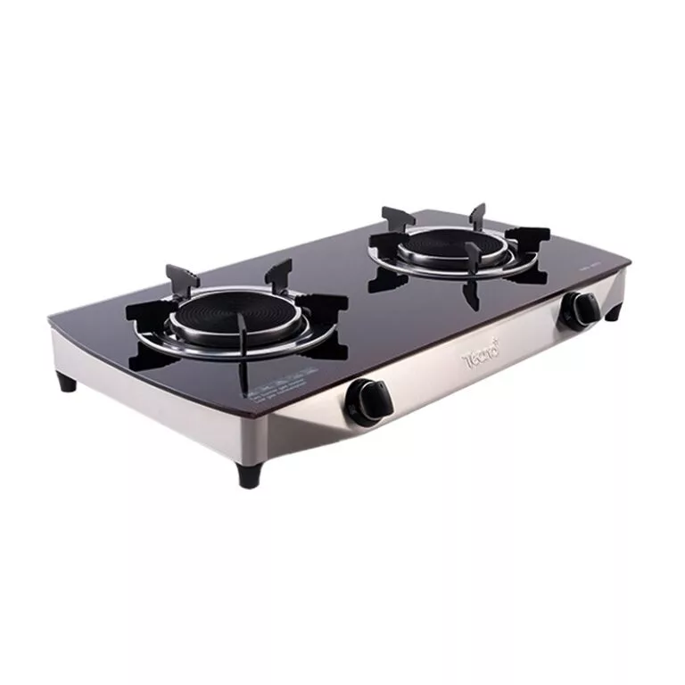 TECNOSTAR เตาแก๊สตั้งโต๊ะ แบบ 2 หัวแก๊ส รุ่น TNS G 2710 GB โครงสร้างของเตาเป็นกระจกนิรภัย สีดำ พร้อมเสริมคานรองรับพิเศษทั้งโครงสร้าง ส่วนฐานรองภาชนะเป็นเหล็กเคลือบสี และหัวเตาผลิตจากทองเหลืองแท้ ให้เปลวไฟแบบ 2 ชั้น สามารถเลือกปรับระดับความร้อนได้ทั้งวงในและวงนอก มาพร้อมระบบจุดติดแมกนิโต และระบบผสมอากาศแบบด้านล่าง เตาแก๊สรุ่นนี้ใช้กับหัวปรับแก๊สแรงดันต่ำเท่านั้น