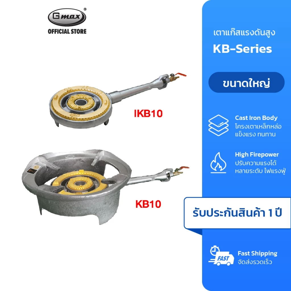 Gmax เตาแก๊ส หัวเตาแรงดันสูง รุ่น KB5 เป็นเตาแก๊สแม่ค้า เหมาะสำหรับใช้กับร้านอาหาร วาล์วแก๊สทำจากอลูมิเนียม หัวเตาชนิดหัวเตาฟู่ ให้ไฟแรง ทำความร้อนได้ดี ช่วยให้เมนูอาหารของคุณสุกเร็วทันใจ เตาแก๊สรุ่นนี้ใช้กับวาล์วเเก๊สชนิดเเรงดันสูงเท่านั้น และเหมาะกับการทำเมนูทั่วไป เช่น อาหารตามสั่ง ก๋วยเตี๋ยว เป็นต้น