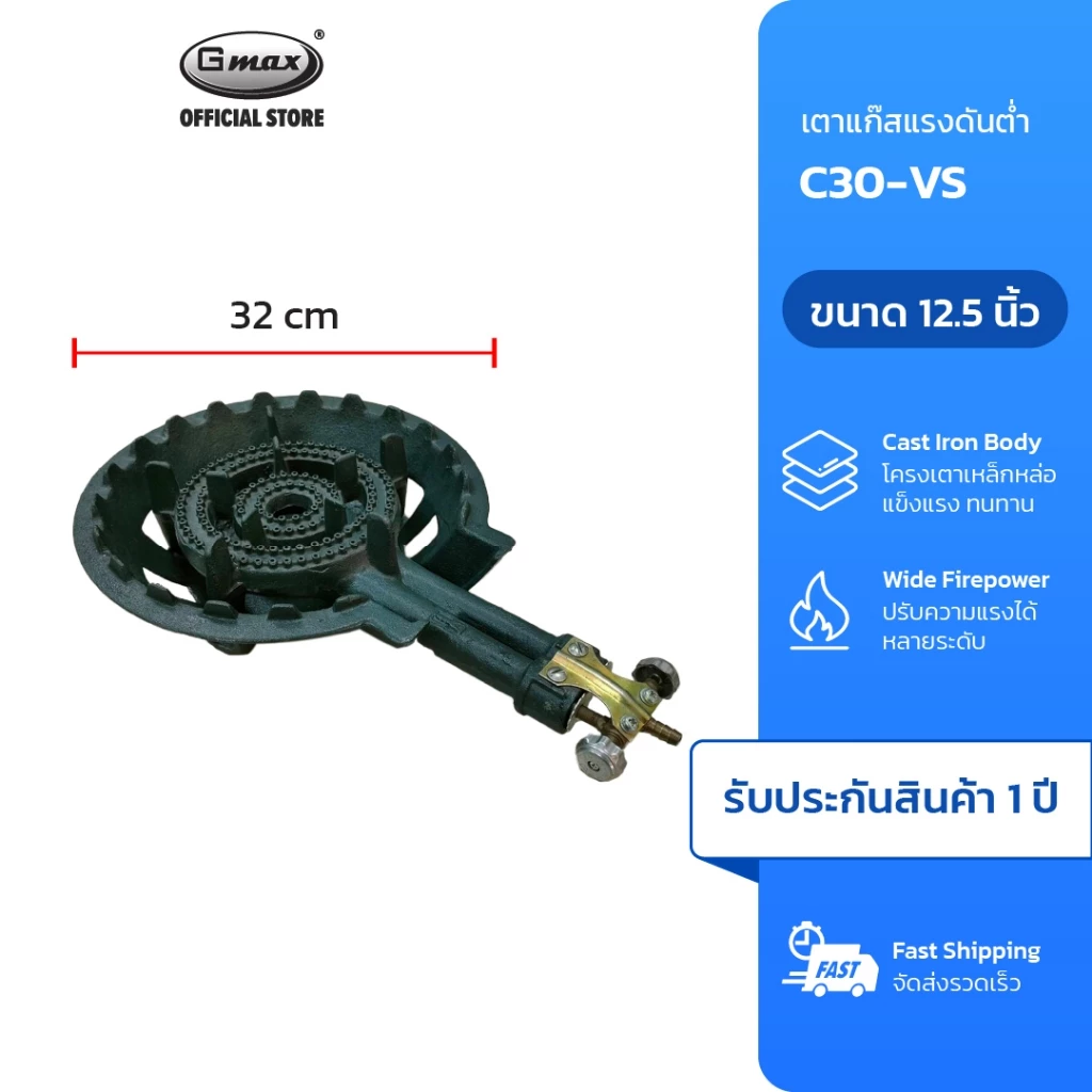 - Gmax เตาแก๊สหัวแรงดันสูง เตาแก๊สแม่ค้า วาล์วอลูมิเนียม ขนาดหัวเตา 11″ รุ่น KB5