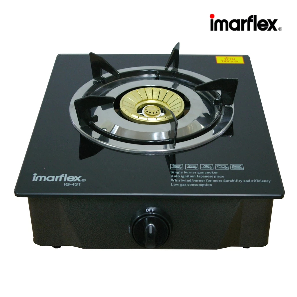 Imarflex เตาแก๊ส แบบตั้งโต๊ะ 2 หัวเตา รุ่น IG-426 ใช้กับชนิดเชื้อเพลิง LPG หรือ แก๊สปิโตรเลียม ช่วยประหยัดพลังงานได้ดี หัวเตาทำจากสแตนเลส คุณภาพสูง ทนร้อน และให้เปลวได้ที่สม่ำเสมอ หน้าเตาผลิตจากกระจก ทนความร้อนสูง ส่วนตัวโครงสร้างเตาเป็นเหล็กผ่านการพ่นสีเคลือบแข็ง เตาแก๊สเหมาะสำหรับใช้กับวาวล์แรงดันต่ำเท่านั้น