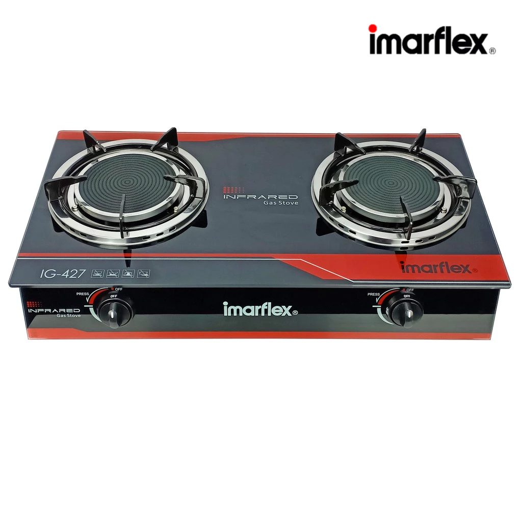 - Imarflex เตาแก๊ส ตั้งโต๊ะ แบบ 2 หัว หัวเตาทำจากสแตนเลส หน้ากระจก รุ่น IG-426