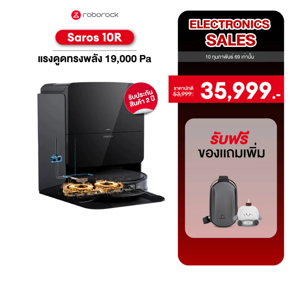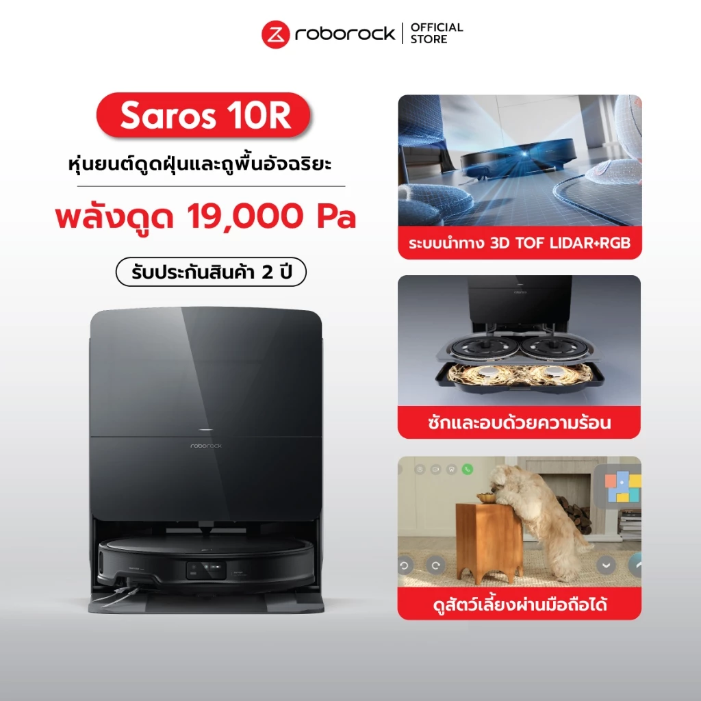 - Roborock หุ่นยนต์ดูดฝุ่นถูพื้น แรงดูด 19,000 Pa รุ่น Saros 10R