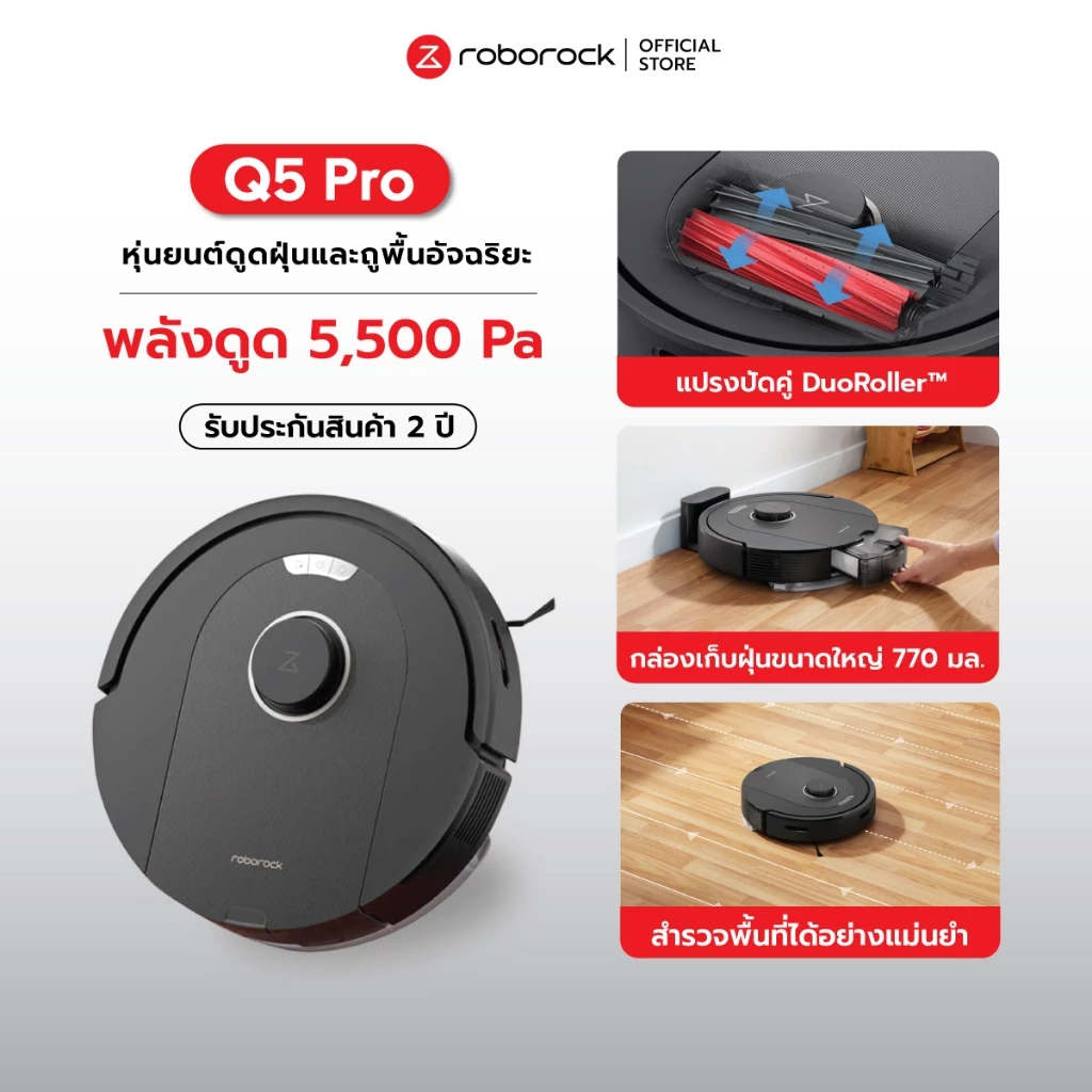 - สามารถยกผ้าถูและปรับแรงดูดอัตโนมัติเมื่อเจอพรม