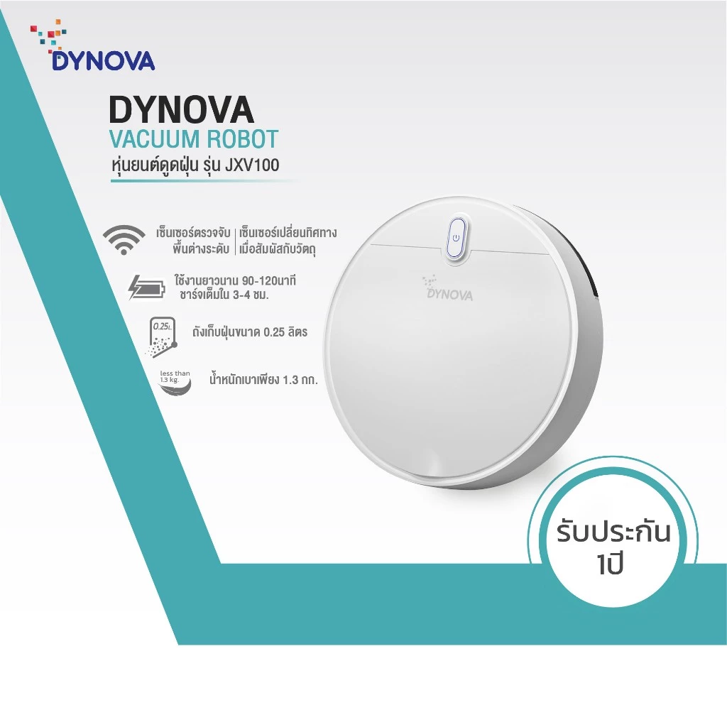 - Dynova หุ่นยนต์ดูดฝุ่น ความจุ 0.25L กำลังไฟ 10W รุ่น JXV100