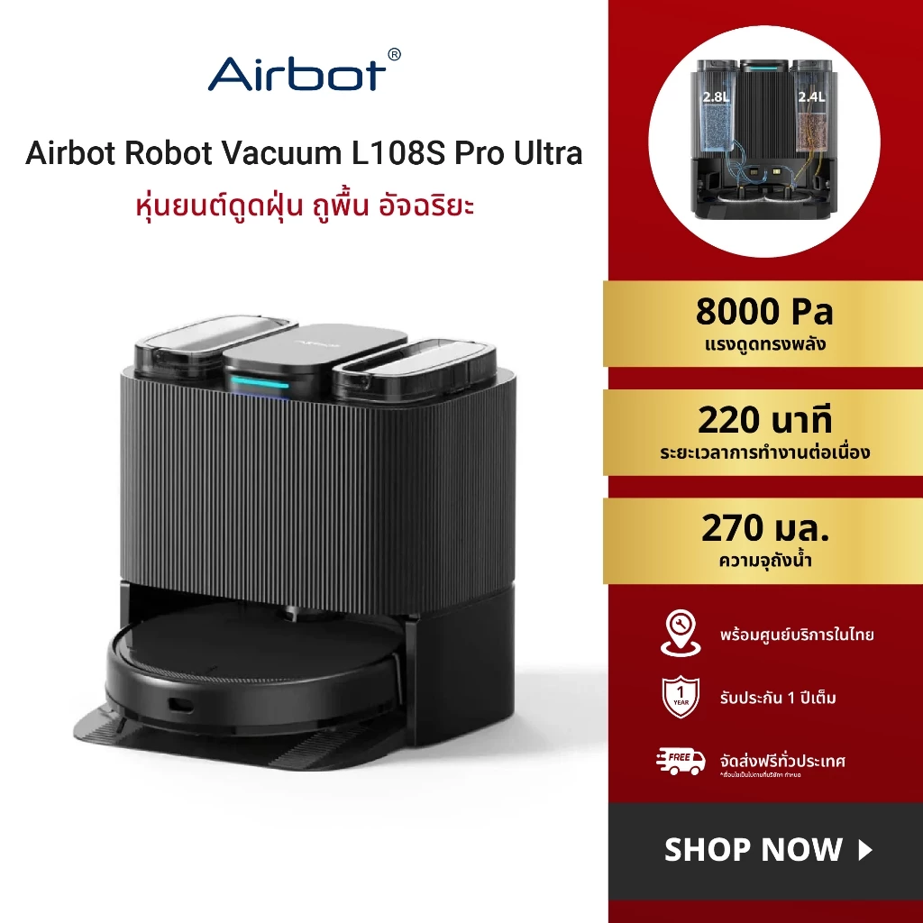 - Airbot หุ่นยนต์ดูดฝุ่น ถูพื้น อัจฉริยะ AI 17000Pa รุ่น X40 Ultra