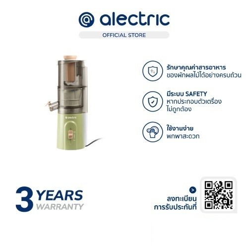 Alectric Fruit Extractor เครื่องคั้นน้ำผลไม้แยกกาก รุ่น F-ET1 สกัดด้วยวิธีนุ่มนวล ช่วยรักษาคุณค่าสารอาหาร วิตามิน และเอนไซม์ ของผักและผลไม้ได้อย่างครบถ้วน สามารถใช้สกัดน้ำได้มากกว่าเครื่องรอบสูงที่ใช้ใบมีด ให้คุณได้ลิ้มรสน้ำผักและผลไม้ที่มีรสชาติสดๆ เหมือนการเคี้ยวผักและผลไม้ไว้ในปาก