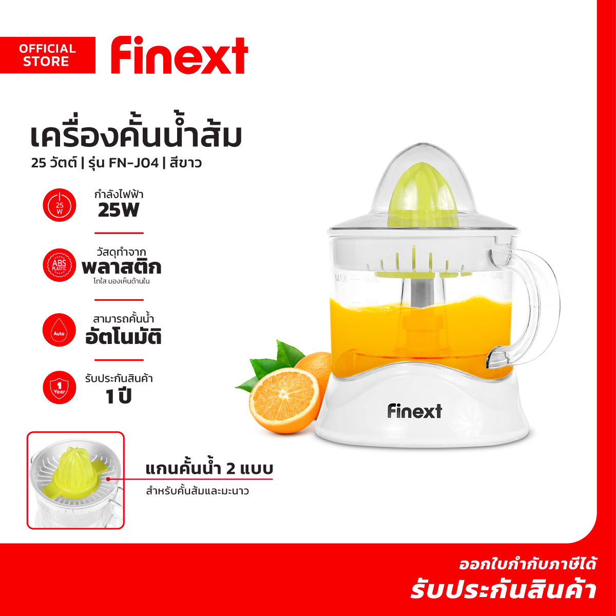 - เครื่องคั้นน้ำส้มไฟฟ้า ความจุ 1 ลิตร