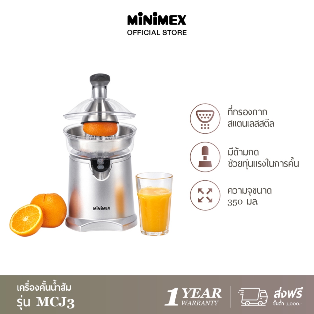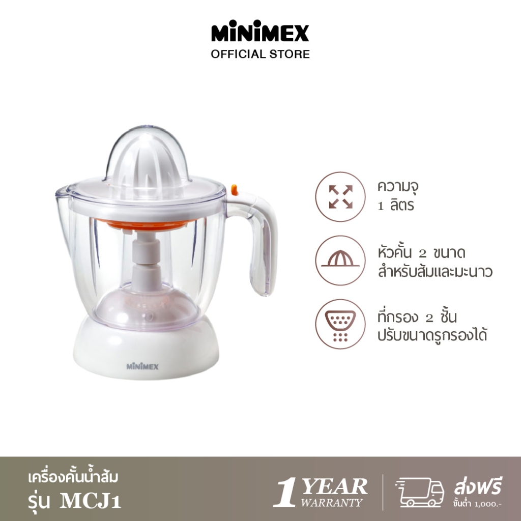 - MiniMex เครื่องคั้นน้ำส้มและมะนาว 1 ลิตร พร้อม 2 หัวคั้น รุ่น MCJ1