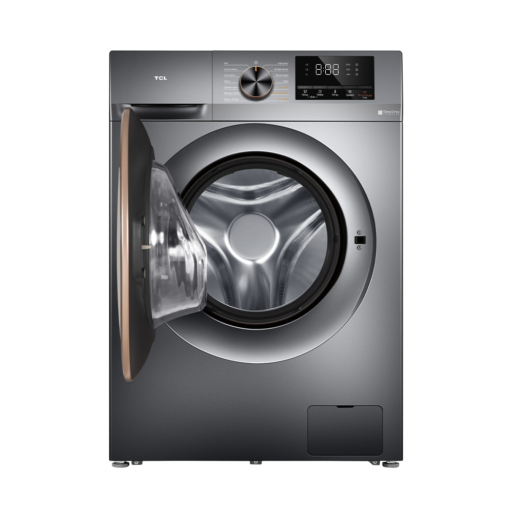 TCL รุ่น WT890PWDS เป็นเครื่องซักและอบผ้าฝาหน้า ความจุซัก 10 กก. และอบ 7 กก. มาพร้อมจอสัมผัสสี ใช้งานง่าย ทันสมัย ขจัดคราบยากด้วยฟังก์ชัน Stains Removal และซักด้วยไอน้ำฆ่าเชื้อโรคได้ถึง 99.99% พร้อมมอเตอร์ Inverter Direct Drive ที่ทำงานเงียบ ประหยัดพลังงาน และถังซักดีไซน์รังผึ้งช่วยถนอมผ้า