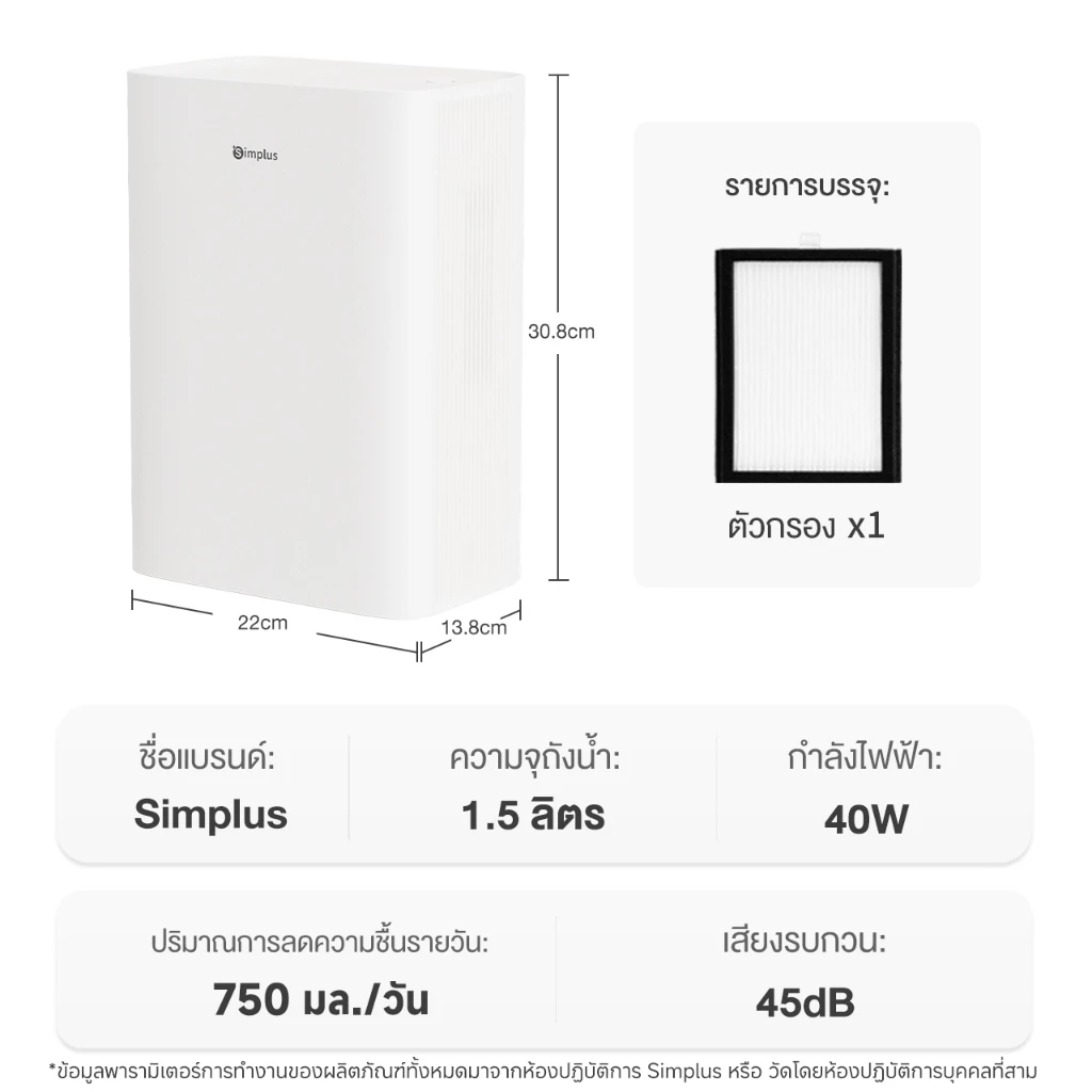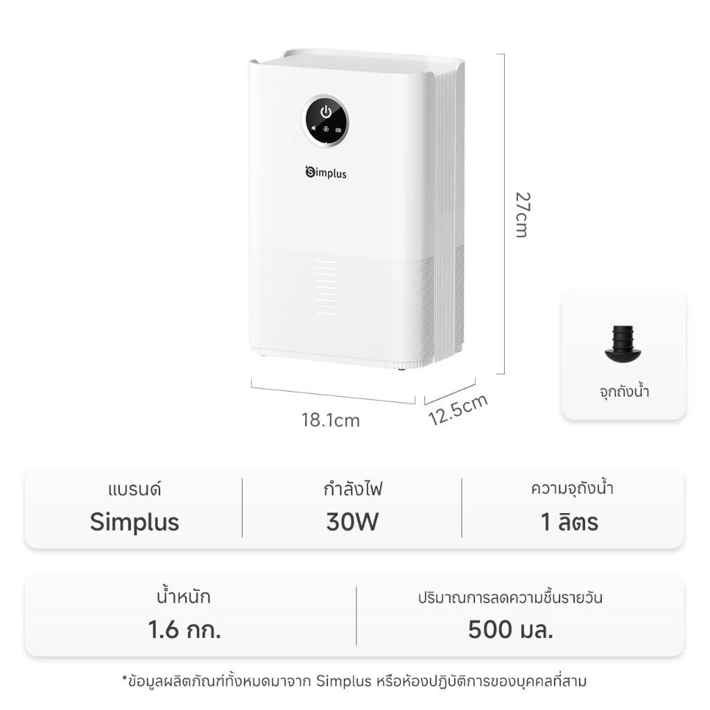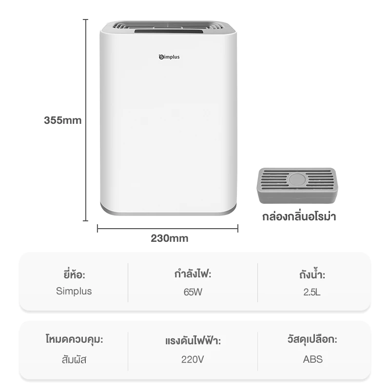 - Simplus เครื่องลดความชื้น ถังน้ำจุ 2.5 ลิตร รุ่น CUSH002