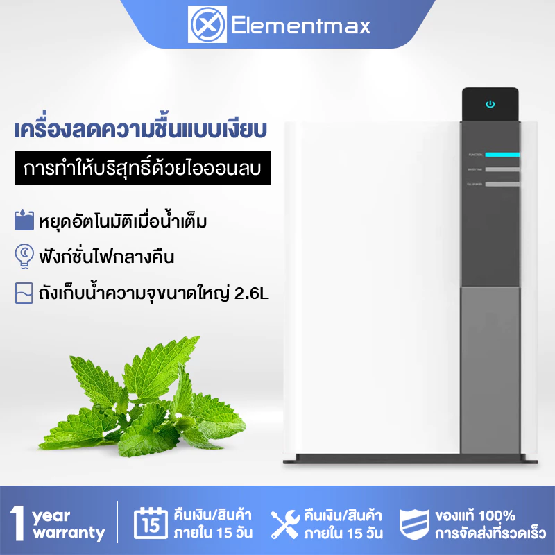 Elementmax เครื่องลดความชื้นในครัวเรือน จำเป็นสำหรับวันที่มีฝนตก หรือห้องที่มีความชื้นมาก ช่วยลดและดูดความชื้นได้อย่างมีประสิทธิภาพ ทำให้คุณหายใจโล่ง เหมาะสำหรับผู้ที่เป็นภูมิแพ้ หรือต้องการลดความชื้นในอากาศให้อยู่ในระดับที่สมดุลมากที่สุด