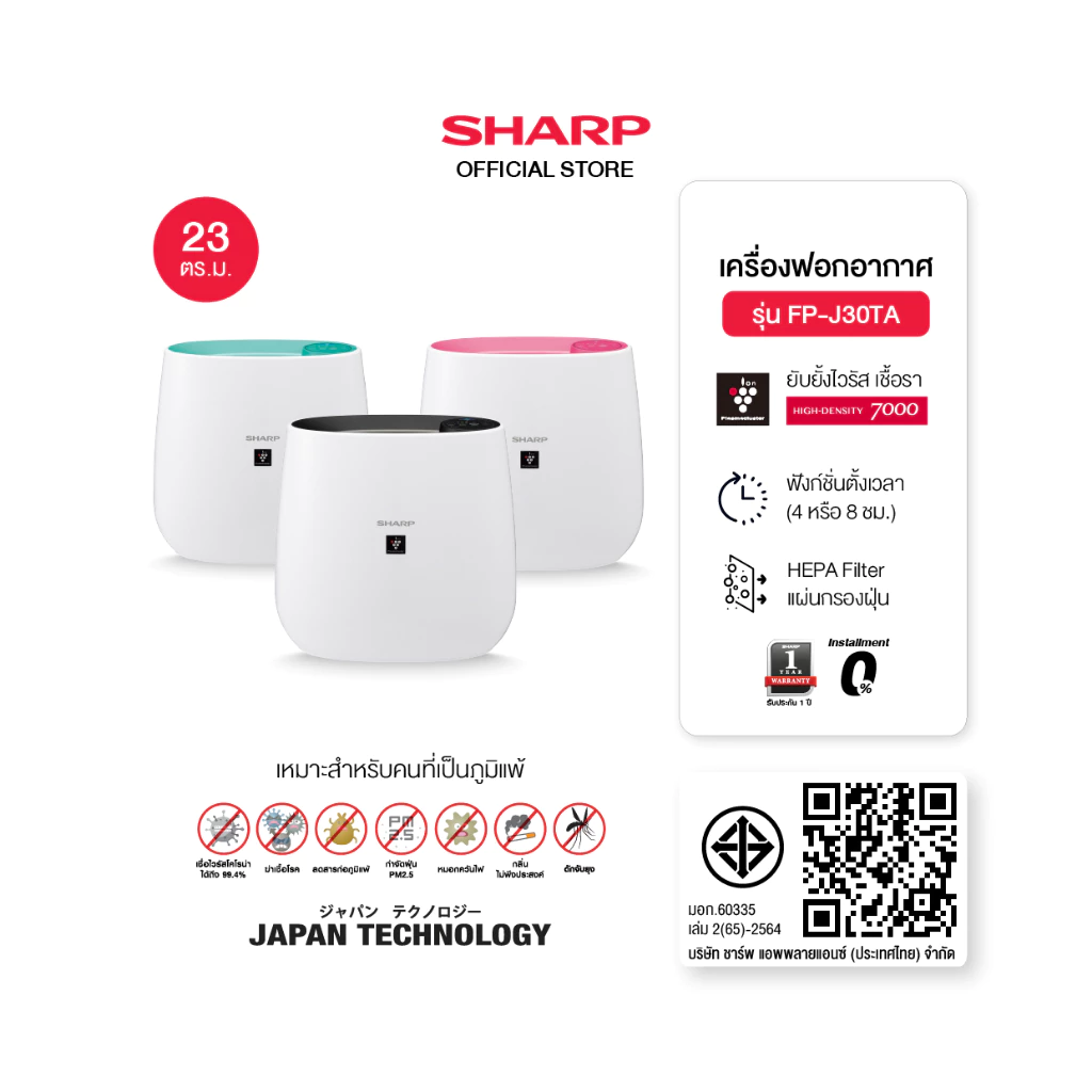 - Sharp เครื่องลดความชื้น พลาสม่าคลัสเตอร์ รุ่น DW-T30FB
