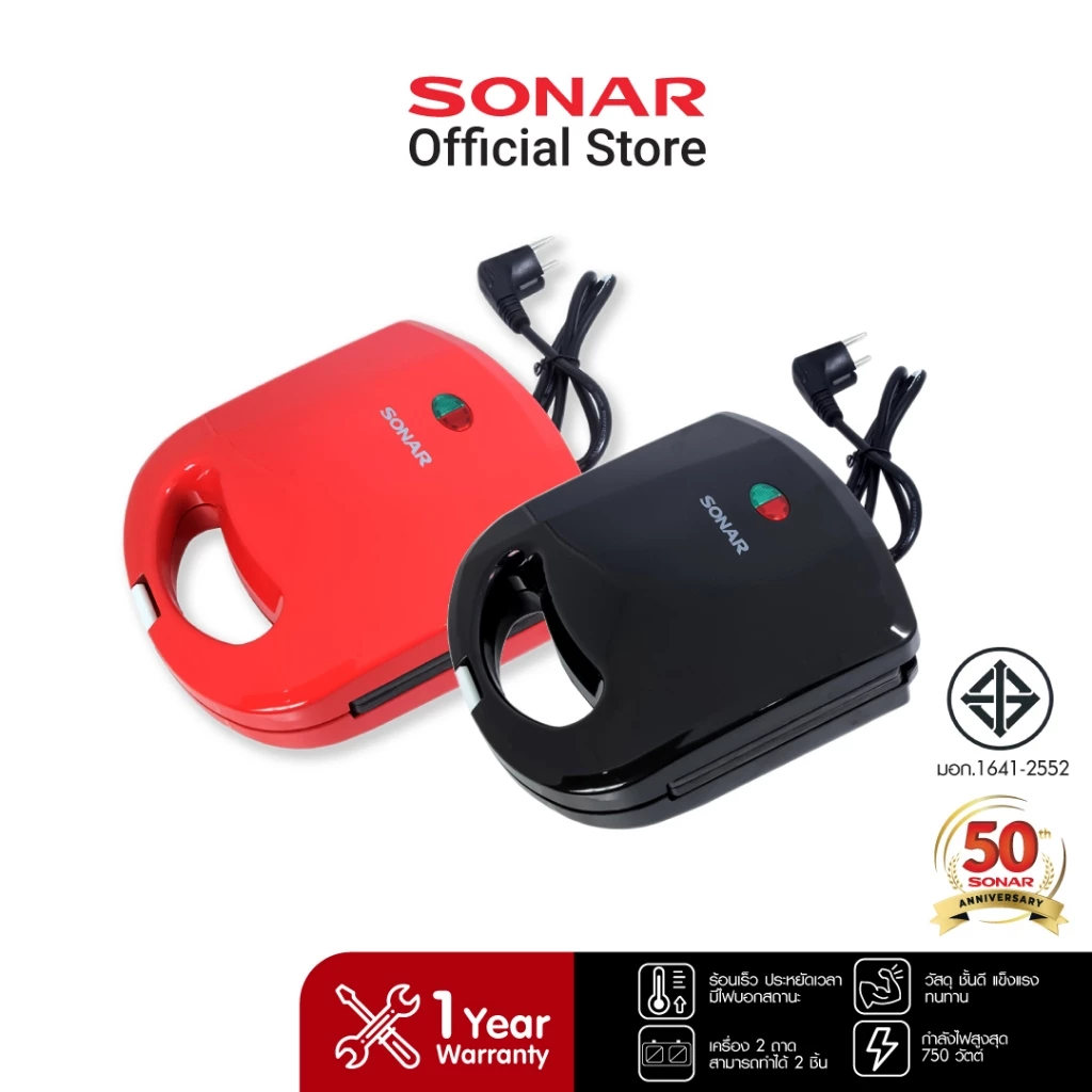 มาทำแซนวิชหอมกรุ่นที่คุณก็สามารถทำเองได้ง่ายๆ ไม่ว่าจะมื้อไหนก็อร่อยได้เหมือนกันกับ Sonar เครื่องทำแซนวิส รุ่น SM-P022 อีกหนึ่งตัวช่วยที่ทำให้มื้ออร่อยของคุณไม่ใช่เรื่องยากอีกต่อไป ใช้ทำแซนวิช สำหรับขนมปัง 2 คู่ ช่องทำแซนวิชเคลือบสารกันติด ช่วยให้ขนมปังไม่ติดพิมพ์ ทำความสะอาดง่าย มีระบบตัดไฟอัตโนมัติเมื่ออาหารสุก พร้อมการรับประกัน 1 ปีเต็ม