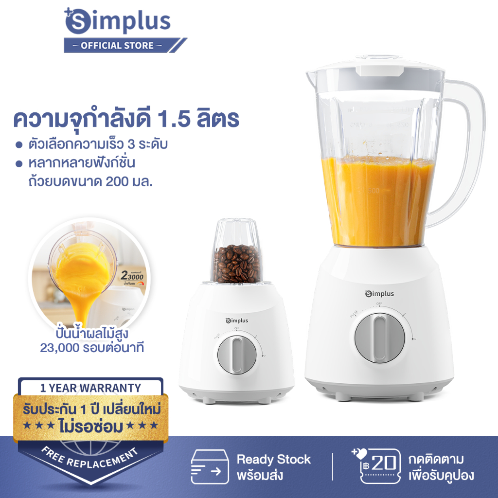 - Simplus Blender เครื่องปั่นสมูทตี้ มัลติฟังก์ชั่น แบบปุ่ม ขนาด 1.5 ลิตร รุ่น LLJH008