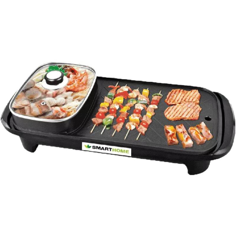 SMARTHOME เตาหมูกระทะ เตาปิ้งย่างอเนกประสงค์ พร้อมหม้อชาบู รุ่น SM-EG1506 สามารถทำเมนูปิ้งย่างและชาบูได้ในเวลาเดียวกัน ผิวหน้าเตาและหม้อชาบูผ่านการเคลือบ Non-Stick ทำให้อาหารไม่ติดกระทะ เพื่อการทำความสะอาดที่ง่ายขึ้น เตาสามารถปรับระดับความร้อนได้ตามที่ต้องการ ส่วนของหม้อชาบูมาพร้อมฝาแก้วใสเห็นอาหารภายใน และทนความร้อนสูง ตัวเตาดีไซน์สวยงาม ออกแบบเพื่อให้สามารถประกอบอาหารได้หลากหลายรูปแบบ