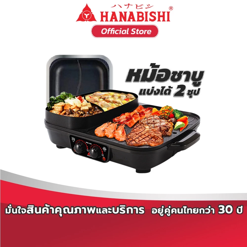 - Hanabishi เตาหมูกระทะ เตาปิ้งย่าง ไฟฟ้า พร้อมทำชาบู 2000W รุ่น 20BQ-1
