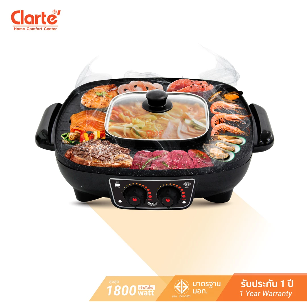 - Clarte’เตาปิ้งย่างอเนกประสงค์แบบชาบูหมูกระทะ Non-Stick1,800 วัตต์ รุ่น FBB421B