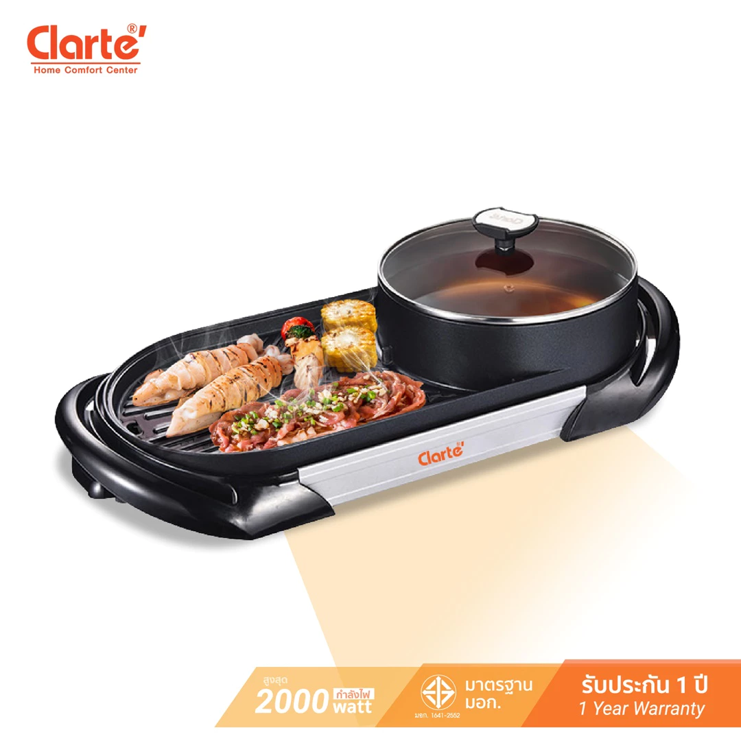 Clarte’เตาปิ้งย่างอเนกประสงค์แบบชาบูหมูกระทะ Non-Stick1,800 วัตต์ รุ่น FBB421B สามารถทำเมนูปิ้งย่าง พร้อมทำสุกี้ยากี้ได้ในเวลาเดียวกัน เตาทำความร้อนได้มากถึง 240 องศา ผิวเตาผ่านการเคลือบ Non-Stick คุณภาพสูง ช่วยให้อาหารไม่ติดผิวเตา สามารถทำความสะอาดเตาได้ง่าย เป็นเตาที่ออกแบบมาเพื่อช่วยประหยัดพลังงาน เมื่อเทียบกับการใช้เตาแก๊สแบบทั่วไป