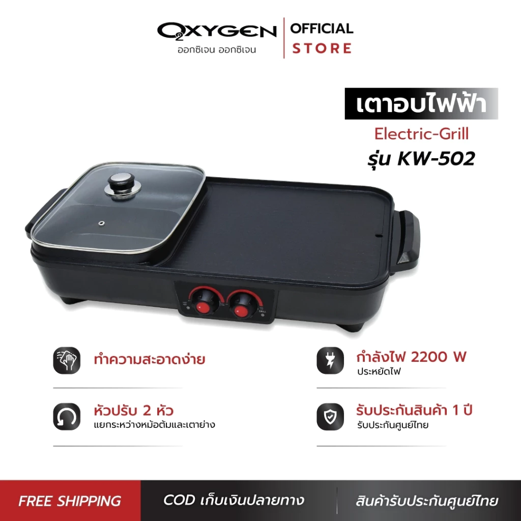 - Oxygen เตาย่างไฟฟ้า รุ่น KW-502 กะทะชาบู