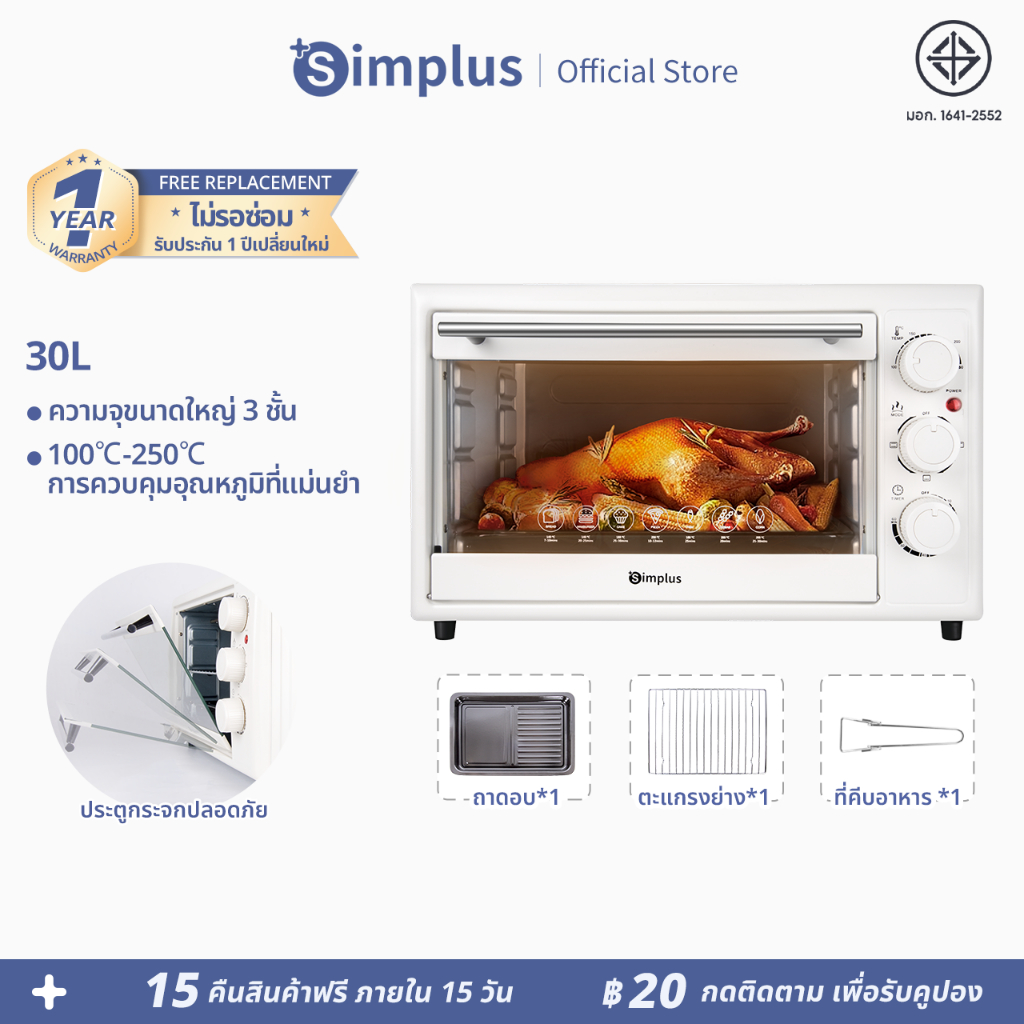 - มาพร้อมฟังก์ชั่น: อบ / ย่าง / อุ่น / ปิ้ง