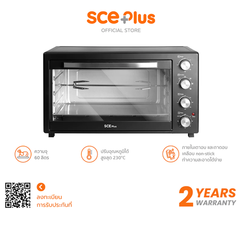 - SCE Plus เตาอบไฟฟ้า 60 ลิตร กำลังไฟ 2200W รุ่น ALO2