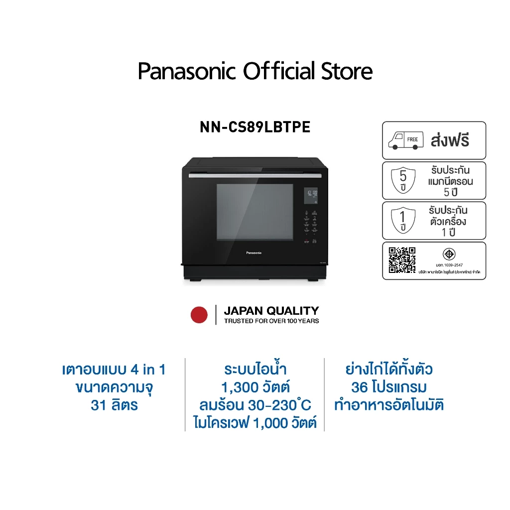 - มีฟังก์ชั่นอบ, ย่าง, ปิ้ง, อบแบบใช้แกนย่างหมุน และอบแบบลมร้อน