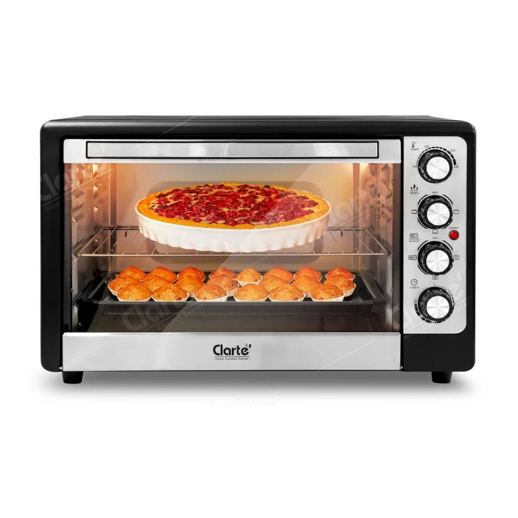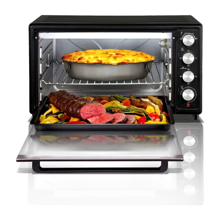 เตาอบไฟฟ้า ขนาดใหญ่ สามารถทำอาหาร ขนมได้สารพัดเมนู ไม่ว่าจะเป็นการอบ ย่าง อุ่น ปิ้ง เตาอบรุ่นนี้ก็สามารถทำได้ มาพร้อมตัวหมุนตั้งอุณหภูมิความร้อน สามารถตั้งเวลาได้นานถึง 60 นาที และเมื่อหมดเวลาที่ตั้งไว้ก็จะมีเสียงแจ้งเตือน ตัวหน้าตู้ของเตาอบเป็นกระจกใส มีความแข็งแรง ทนความร้อนได้ดี ตัวเครื่องทำความสะอาดได้ง่าย
