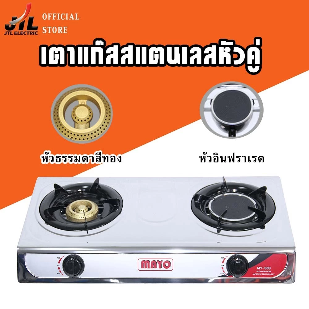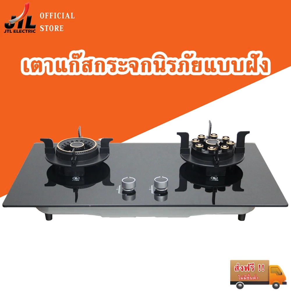 - JTL เตาแก๊ส หน้ากระจก หัวเตาทองเหลืองคู่ รุ่น MY-09