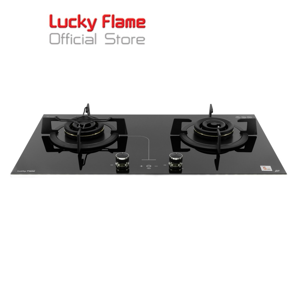 Lucky Flame เตาแก๊สแบบฝัง หน้ากระจกนิรภัย 2 หัวเตา หัวทองเหลือง แบบใหม่เปลวไฟ 3 วง แรงที่สุดถึง 12kW ปรับได้หลายระดับตามต้องการ หัวซ้ายตั้งเวลาปิดได้นานสูงสุด 3 ชั่วโมง พร้อมระบบ Safety Device ตัดแก๊สทันที เมื่อเปลวไฟดับ