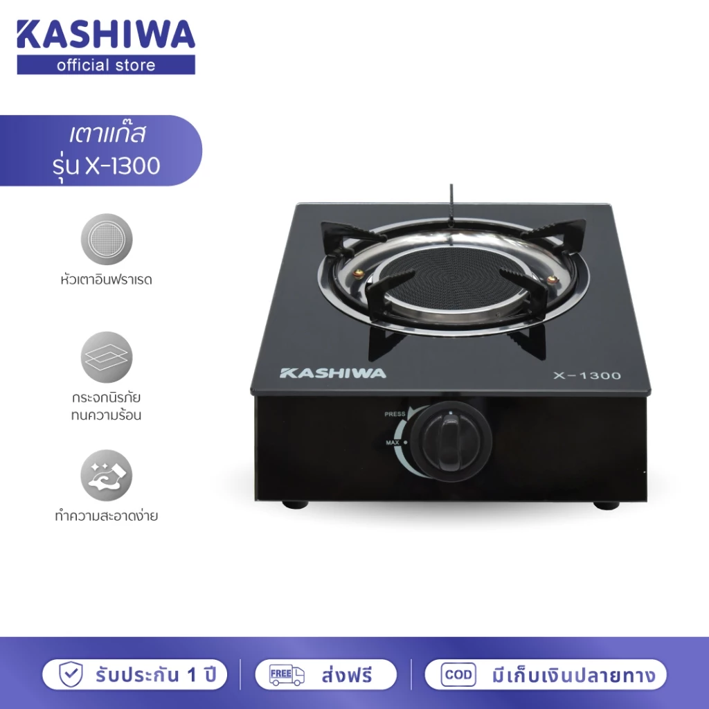 Kashiwa เตาแก๊สแบบฝังหัวคู่หรือวางพื้นโต๊ะก็ได้ หน้ากระจกนิรภัย (หัวเปลว) รุ่น X-5000 กระจายความร้อนได้ดีจึงทำให้อาหารสุกสม่ำเสมอ ตัวเตาเป็นกระจกนิรภัยทนความร้อน มีความทนทานสูง และไม่เป็นสื่อความร้อน พร้อมทั้งสามารถปรับความแรงของไฟได้ตามต้องการ