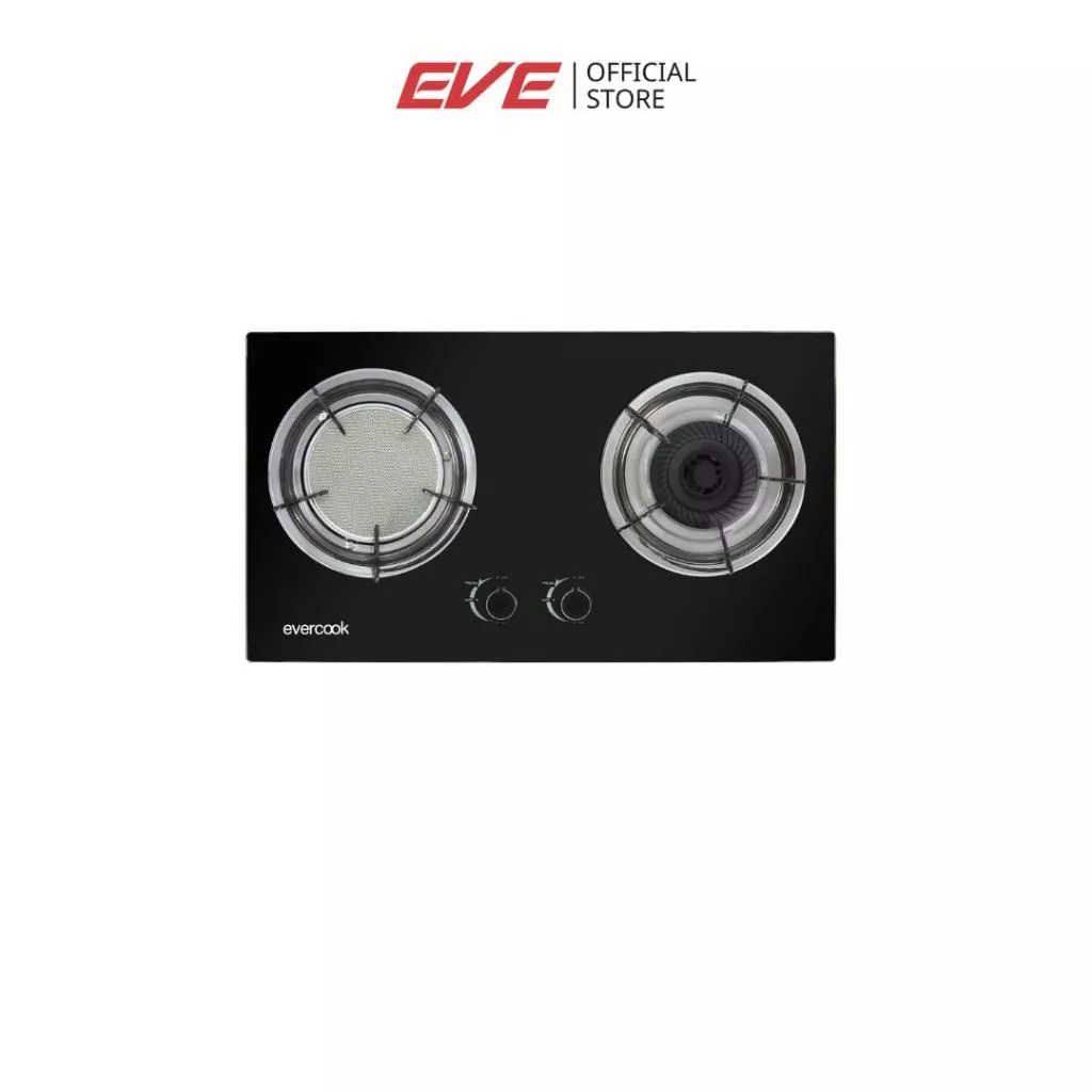 EVE เตาแก๊สแบบฝัง 2 หัวเตา หน้าเตากระจกนิรภัยสีดำ หัวเตาแก๊สผลิตจากสแตนเลสสตีลและทองเหลือง ทนความร้อนสูงและไม่เป็นสนิม เหมาะสำหรับการประกอบอาหารหลายประเภท โดยเฉพาะอาหารที่ต้องใช้ไฟแรง เช่น การทอด หรือการผัด
