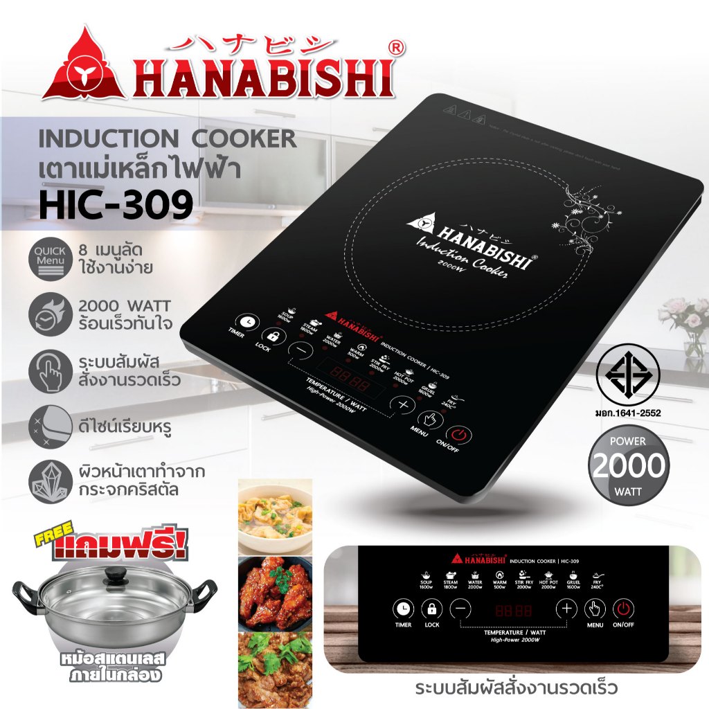 - มีฟังก์ชั่น: ตุ๋น, นึ่ง, ต้มซุป, ทอด, ผัด, หม้อไฟ