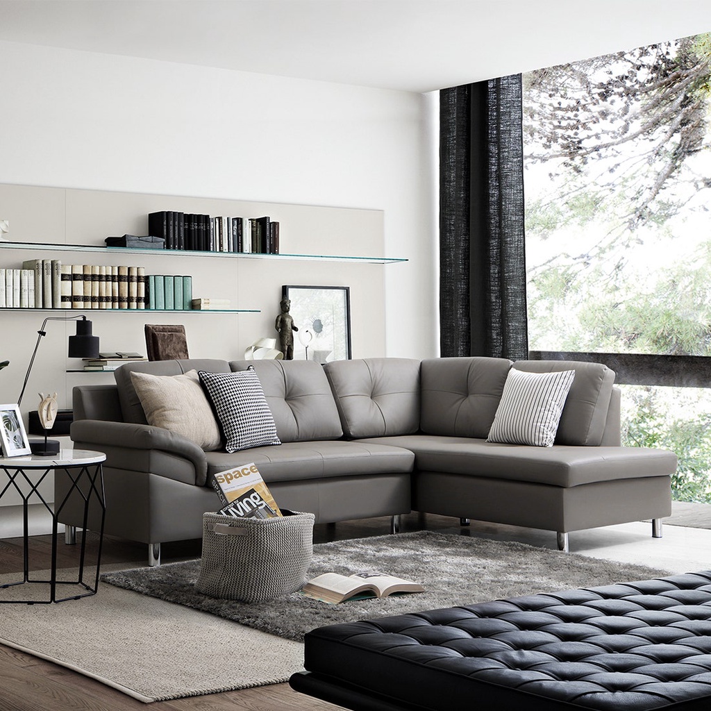 โซฟาหนังสังเคราะห์ L-Shape รุ่น โอวิร่า – สีเทา,สีดำและสีน้ำตาลเข้ม ดีไซน์สำหรับครอบครัว ช่วยสานสัมพันธ์สมาชิกให้อบอุ่นมากยิ่งขึ้น ตัวโครงเป็นไม้เนื้อแข็ง มีความแข็งแรงทนทาน ใช้งานยาวนาน ภายในหุ้มด้วยฟองน้ำอย่างดี มีความยืดหยุ่นสูง นั่งสบาย ขาโซฟาทำจากเหล็ก รองรับน้ำหนักได้ดี