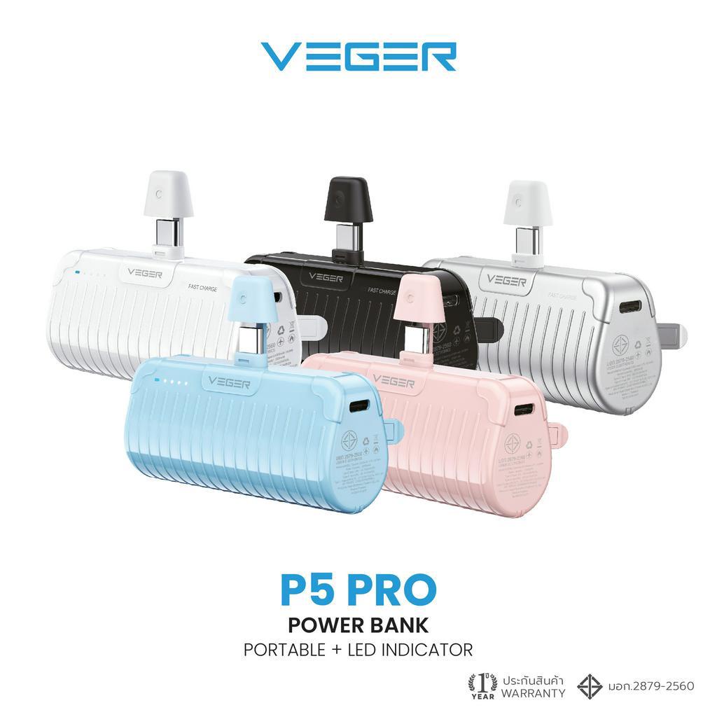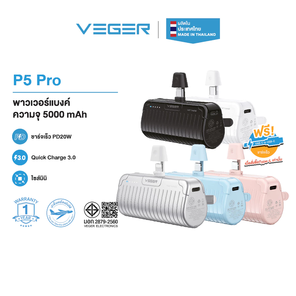 - Veger พาวเวอร์แบงค์ ไซส์มินิ 5,000mAh PD 20 W รุ่น P5 Pro