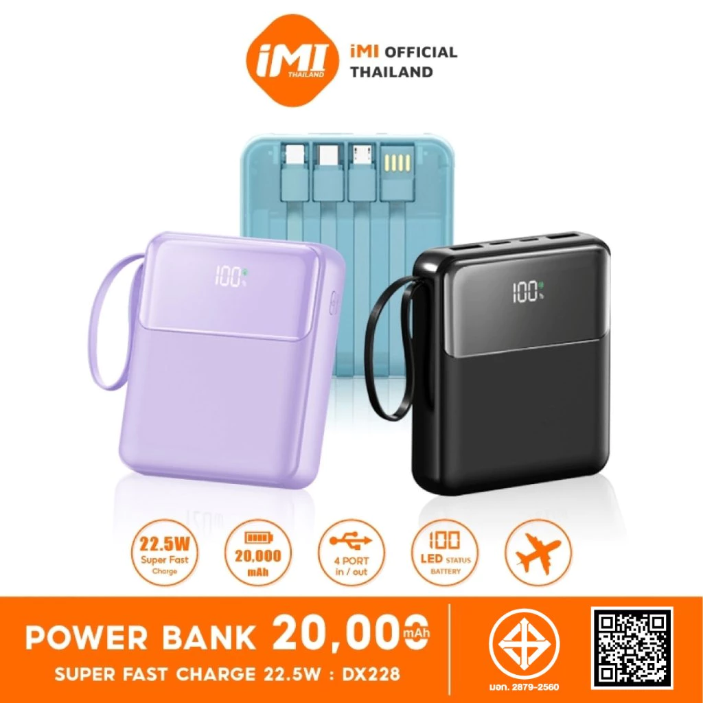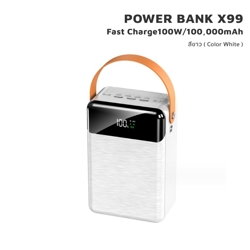 iMI พาวเวอร์แบงค์ รุ่น X99 ความจุ 100000mAh ชาร์จเร็วด้วยกำลังไฟ 100W มาพร้อมสายชาร์จในตัว มีพอร์ต 5 ช่อง สามารถชาร์จอุปกรณ์พร้อมกันได้ถึง 5 เครื่อง มีหน้าจอแสดงผลแบบดิจิตอล และไฟฉาย LED ส่องสว่างเมื่อใช้งานในที่มืด ประหยัดพลังงานได้ดี ทั้งยังพกพาได้สะดวกสบาย เหมาะสำหรับการใช้งานในชีวิตประจำวันมากๆ