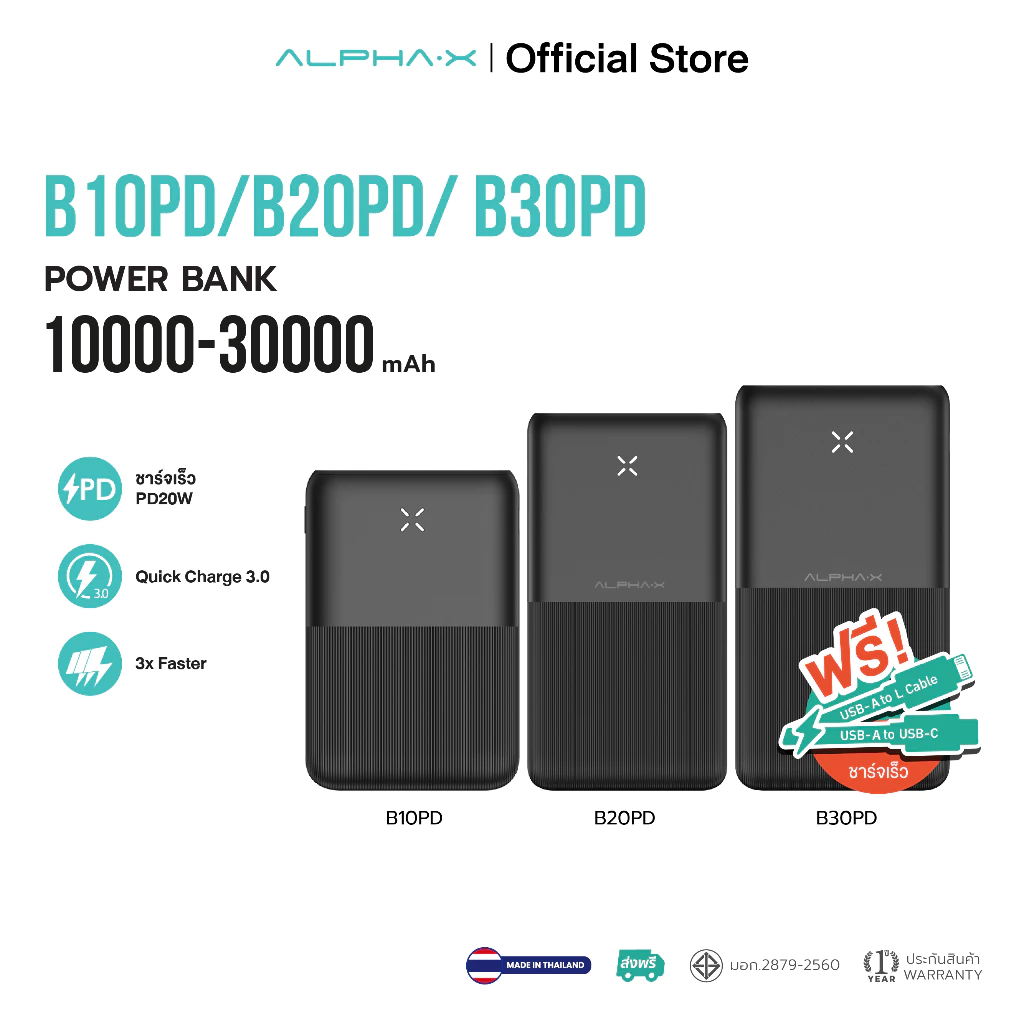 - ALPHA-X แบตสำรอง 30,000mAh PD20W QC3.0 รุ่น B30PD