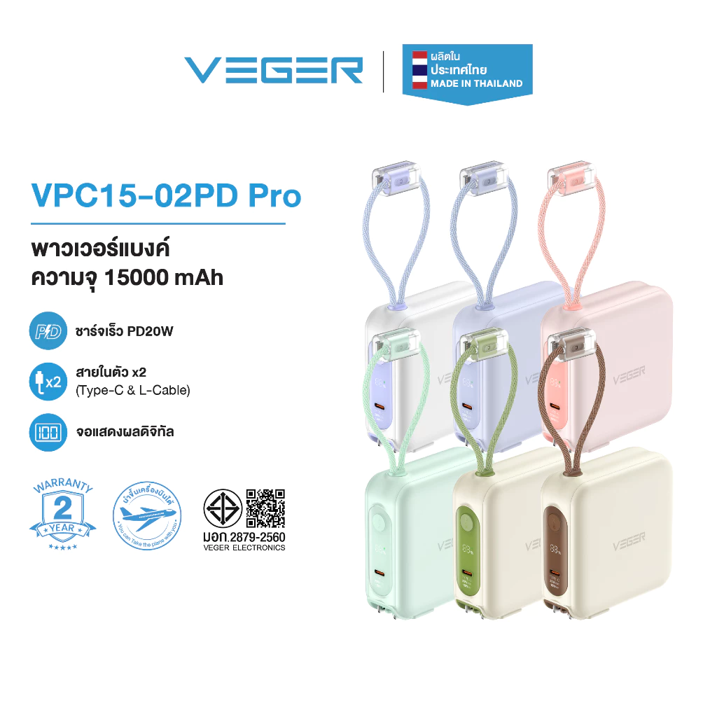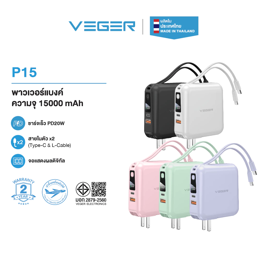 VEGER รุ่น P5-Pro พาวเวอร์แบงค์ขนาดเล็ก พกพาสะดวก ความจุ 5000mAh อินพุตผ่านพอร์ต USB-C ด้วยกระแสไฟสูงสุด 2.0A ออกแบบมาสำหรับ Type-C และ L Output และใช้งานได้ทั้งกับสมาร์ทโฟนระบบปฏิบัติการณ์ Android และ iOS แบตสำรองรุ่นนี้สามารถนำขึ้นเครื่องบินได้