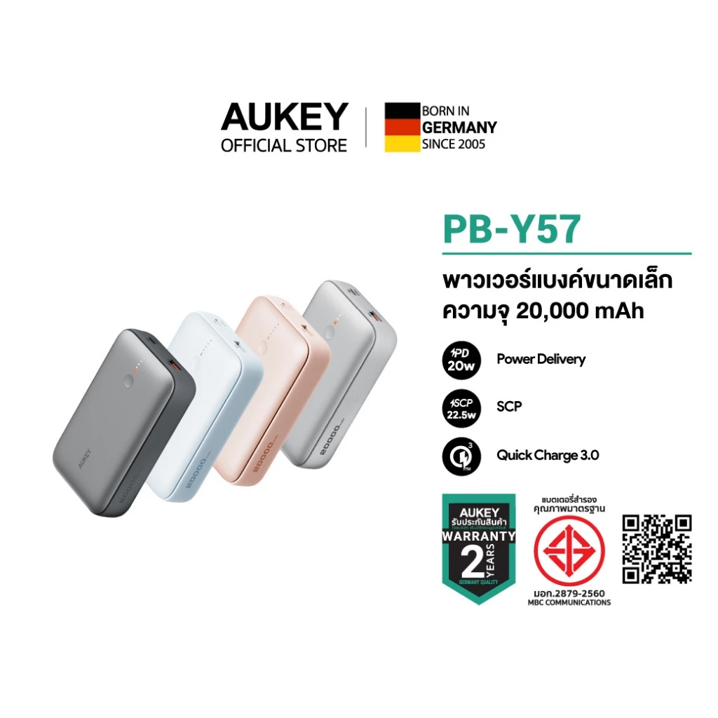 พาวเวอร์แบงค์ขนาดเล็กพิเศษจากแบรนด์ชื่อดัง AUKEY ประเทศเยอรมนี โดดเด่นด้วยขนาดกะทัดรัด เล็กกว่าบัตรเครดิต น้ำหนักเบาเพียง 174 กรัม พกพาสะดวกทุกที่ ความจุแบตเตอรี่อยู่ที่ 10,000 mAh พร้อมพอร์ต USB-C และ USB-A รวม 2 ช่อง รองรับการชาร์จเร็วสูงสุด 22.5W ชาร์จได้หลายอุปกรณ์พร้อมกัน เหมาะสำหรับสมาร์ทโฟน แท็บเล็ต และอุปกรณ์พกพาอื่นๆ เช่น Nintendo Switch เป็นต้น